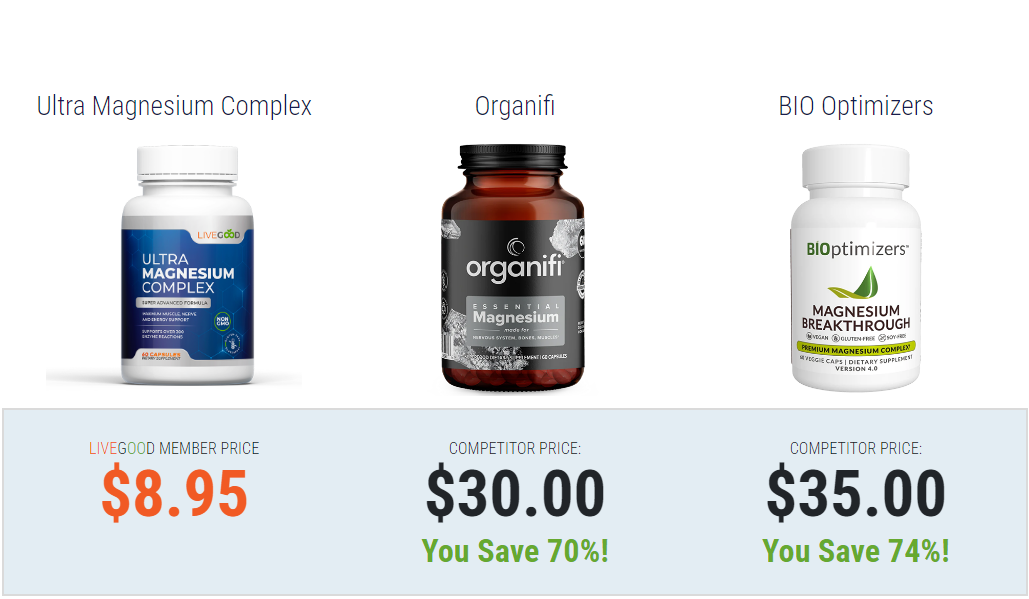Compare LiveGood's Ultra Magnesium Complex at just $8.95 with